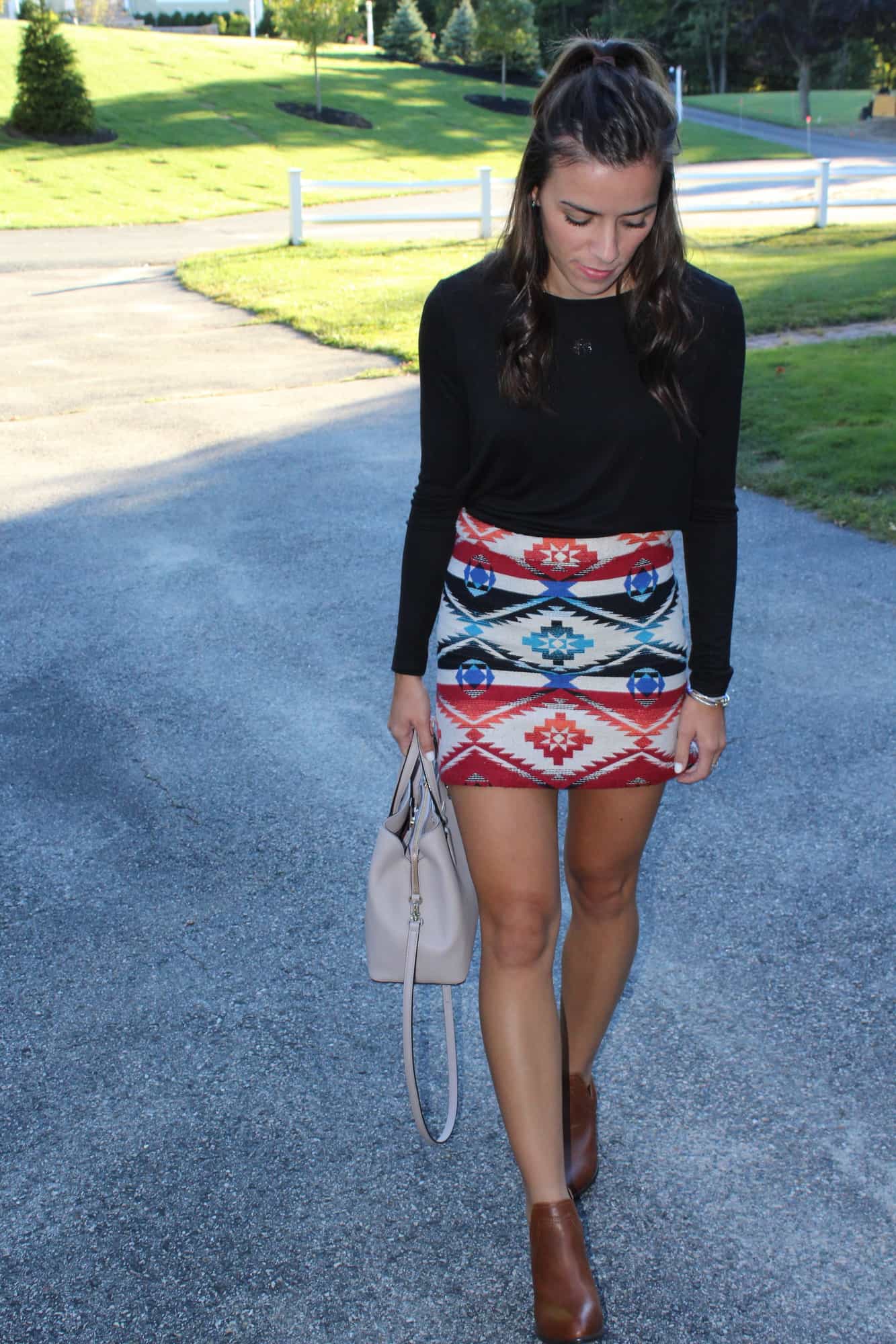 Kate: Sweater – Jeans – OTK Boots – Buffalo Check Clutch