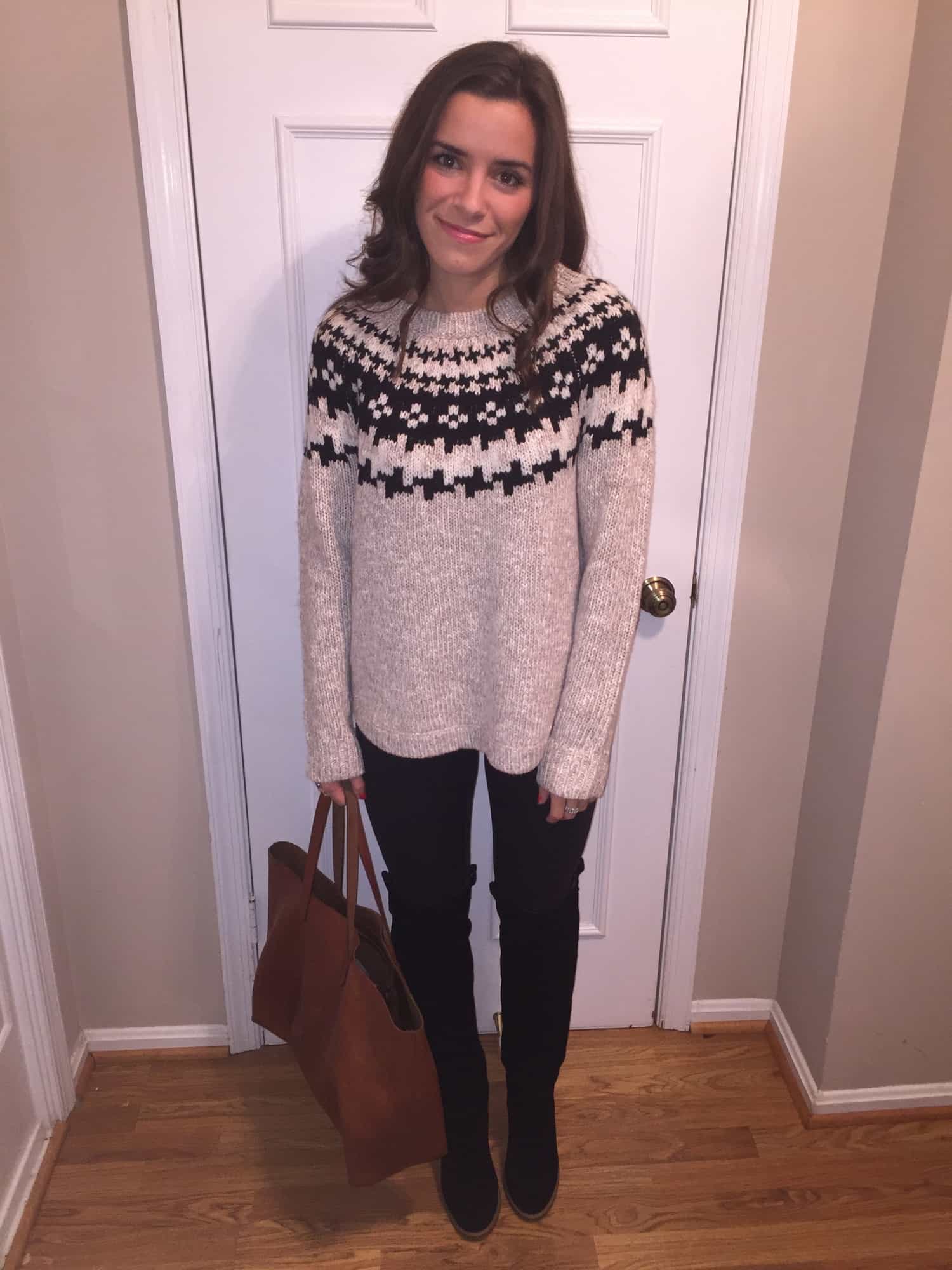 Madewell sweater (sold out) Similar– OTK Boots – Tote