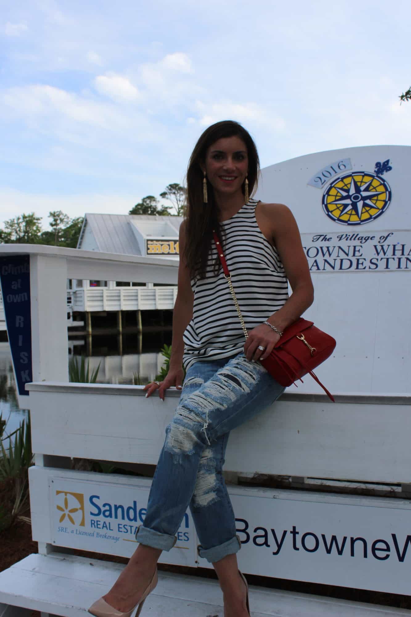 similar tank / Nude heels (under $80 and so comfy) exact boyfriend jeans / tassel earrings (super light)