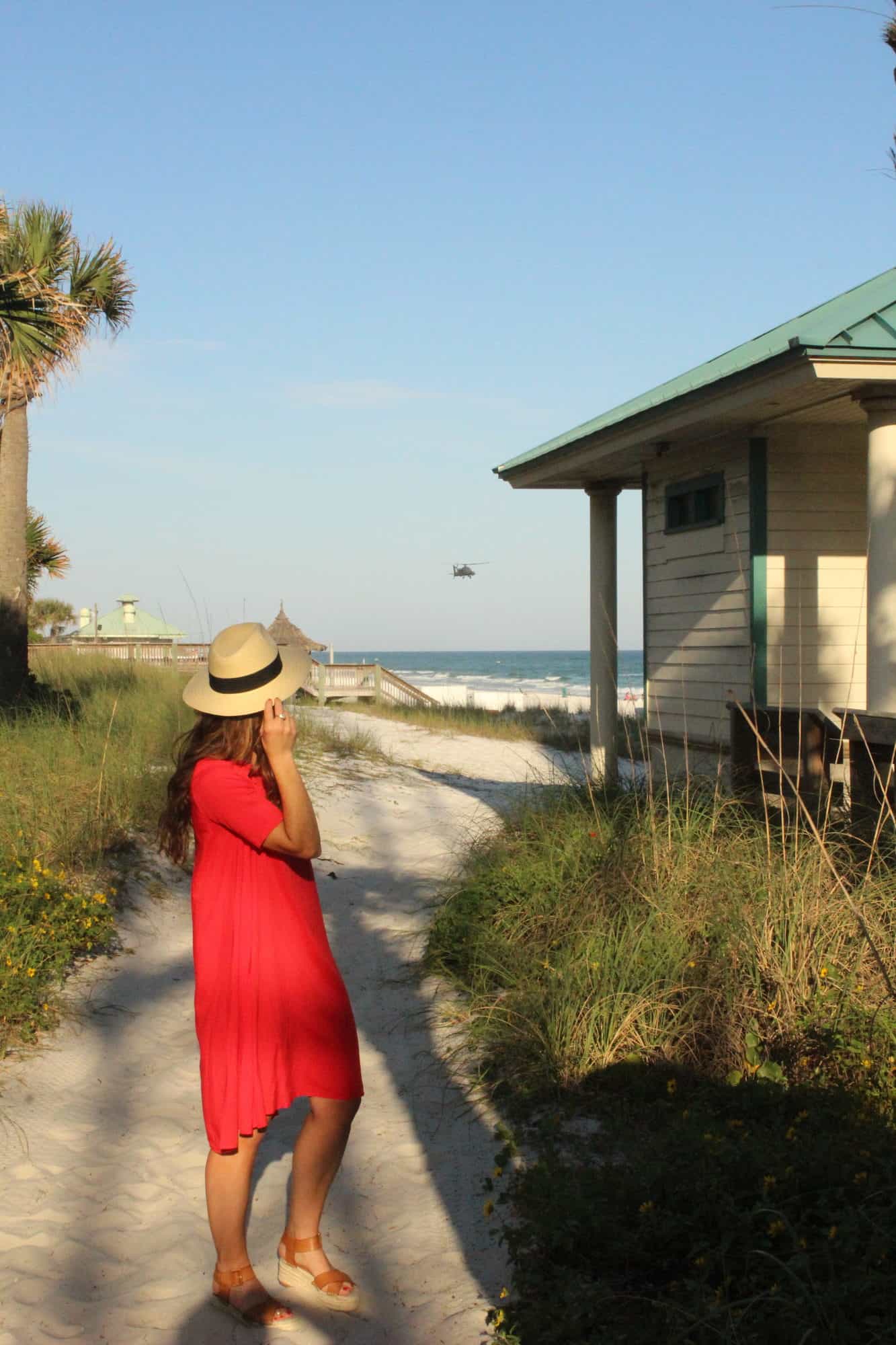 red dress ($15) sole society flatforms (sold out) but similar here / hat