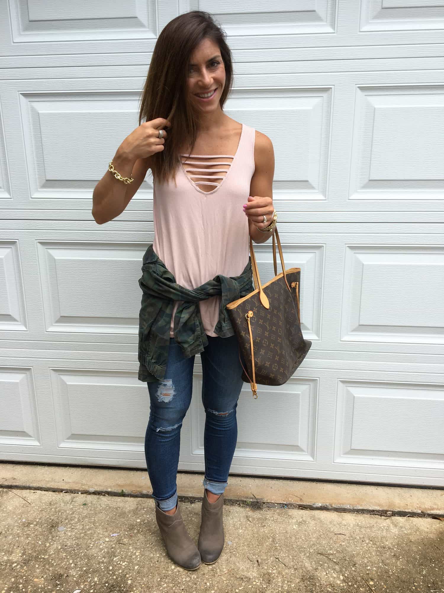 tank / bag / camo jacket another option HERE LV bag / Favorite Denim a lower price pair here