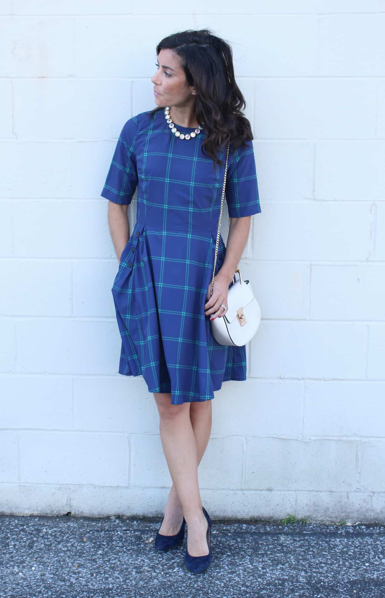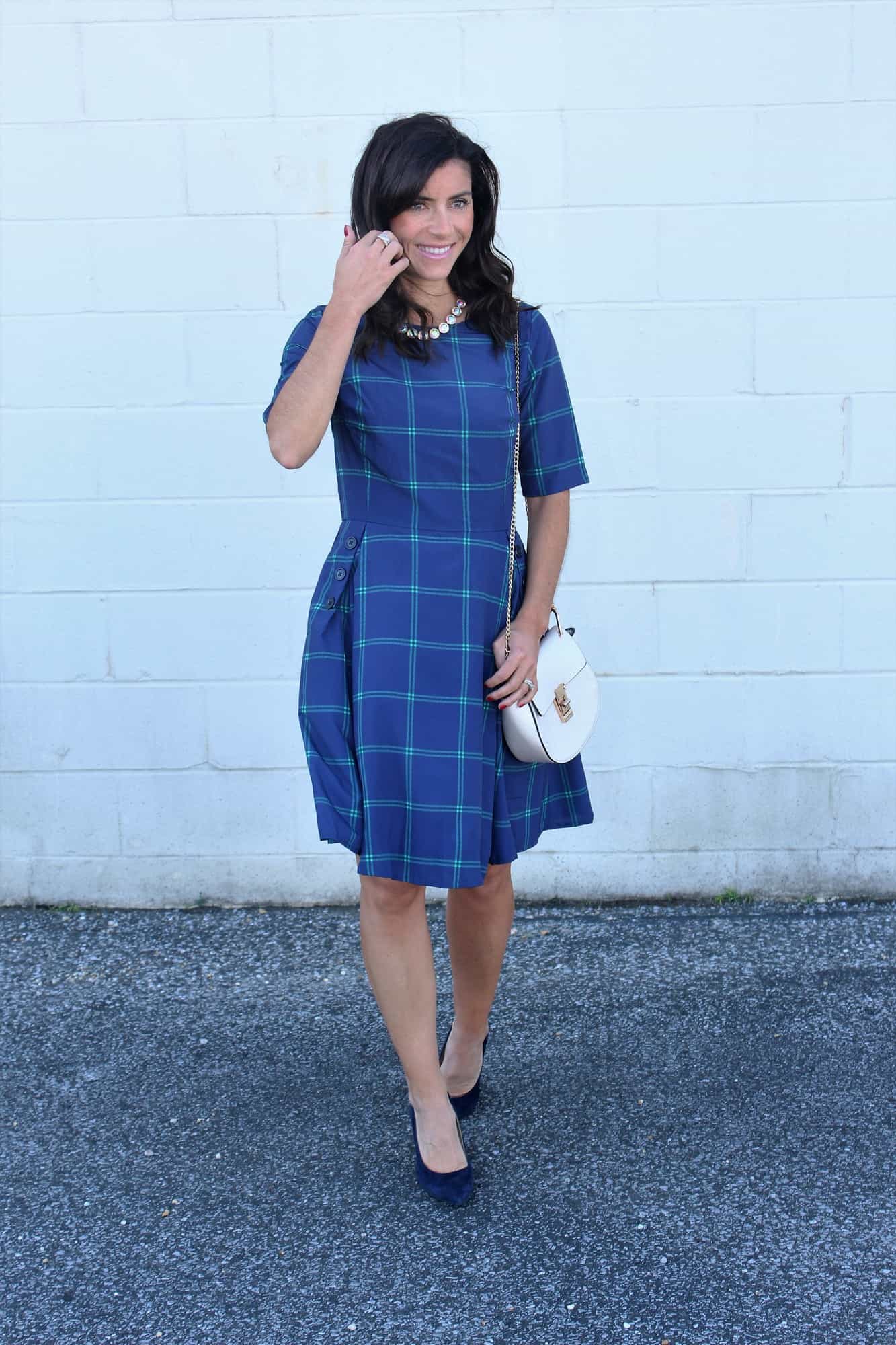 My exact dress can be found here ————> WINDOWPANE CHECK CREPE BUTTONED A-LINE DRESS