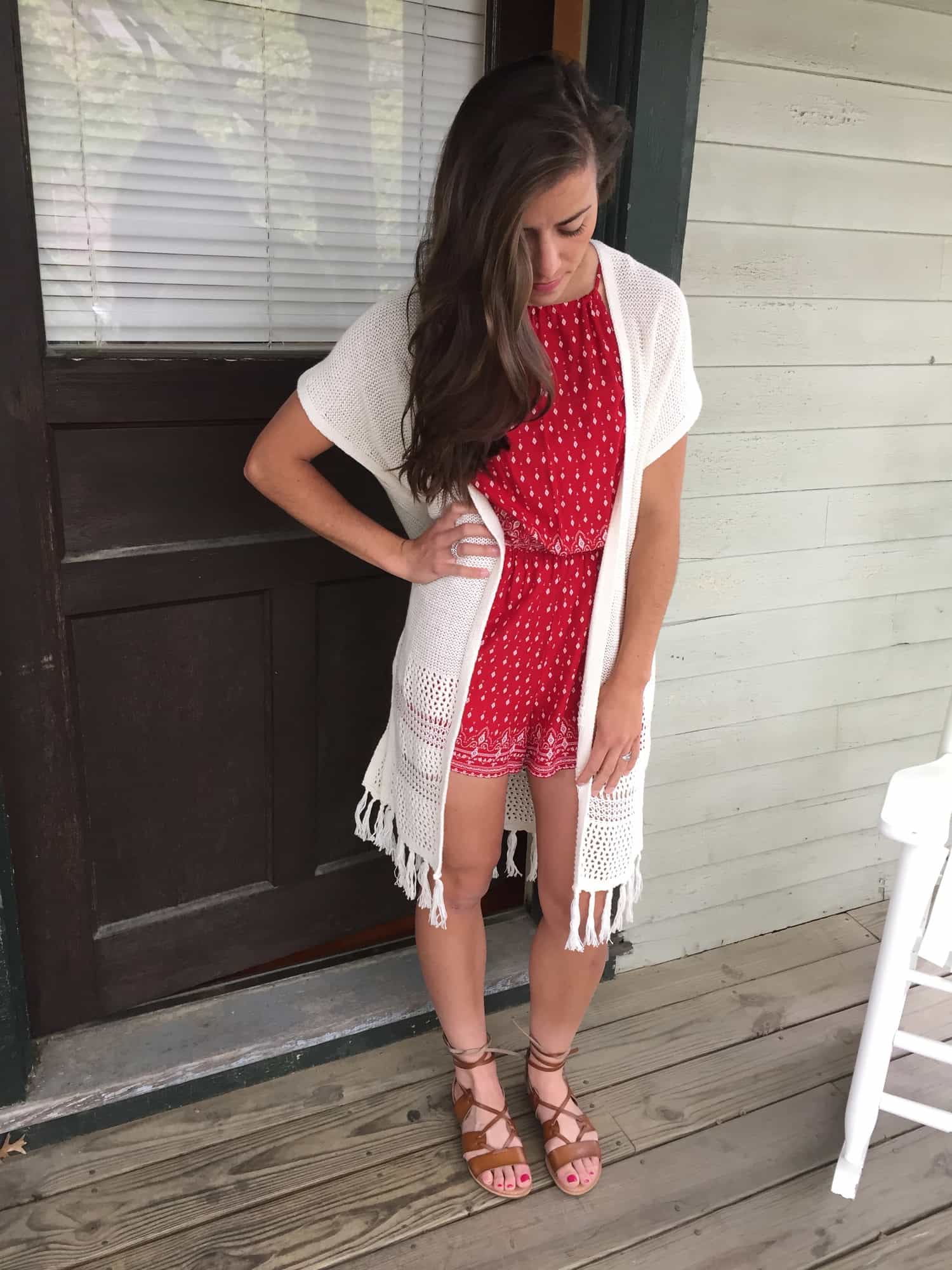 Kate found this sweater/kimono for only $13! So perfect with this H&M romper!!