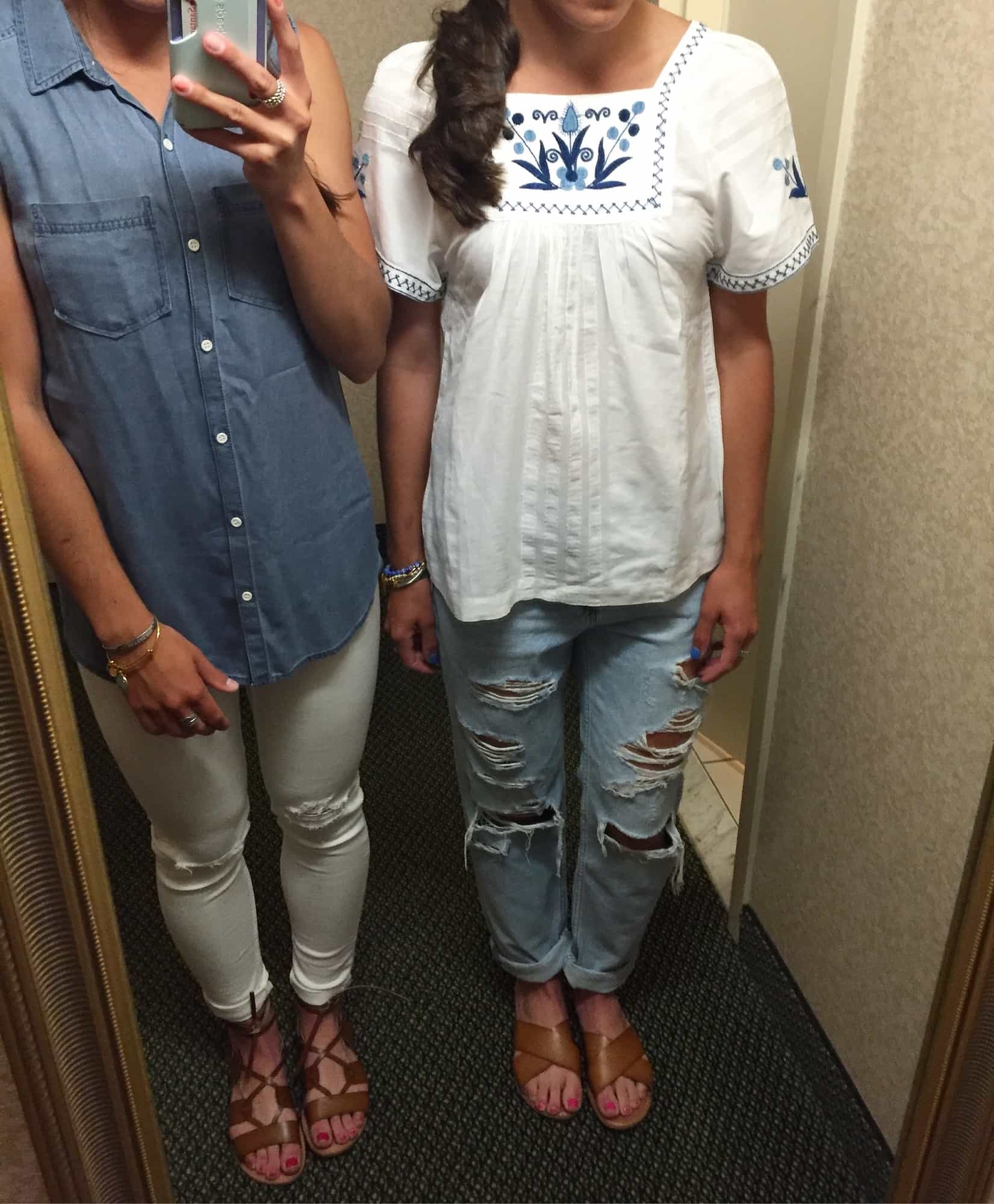 gladiators/ top / Embroidered top/ criss cross sandals/ jeans