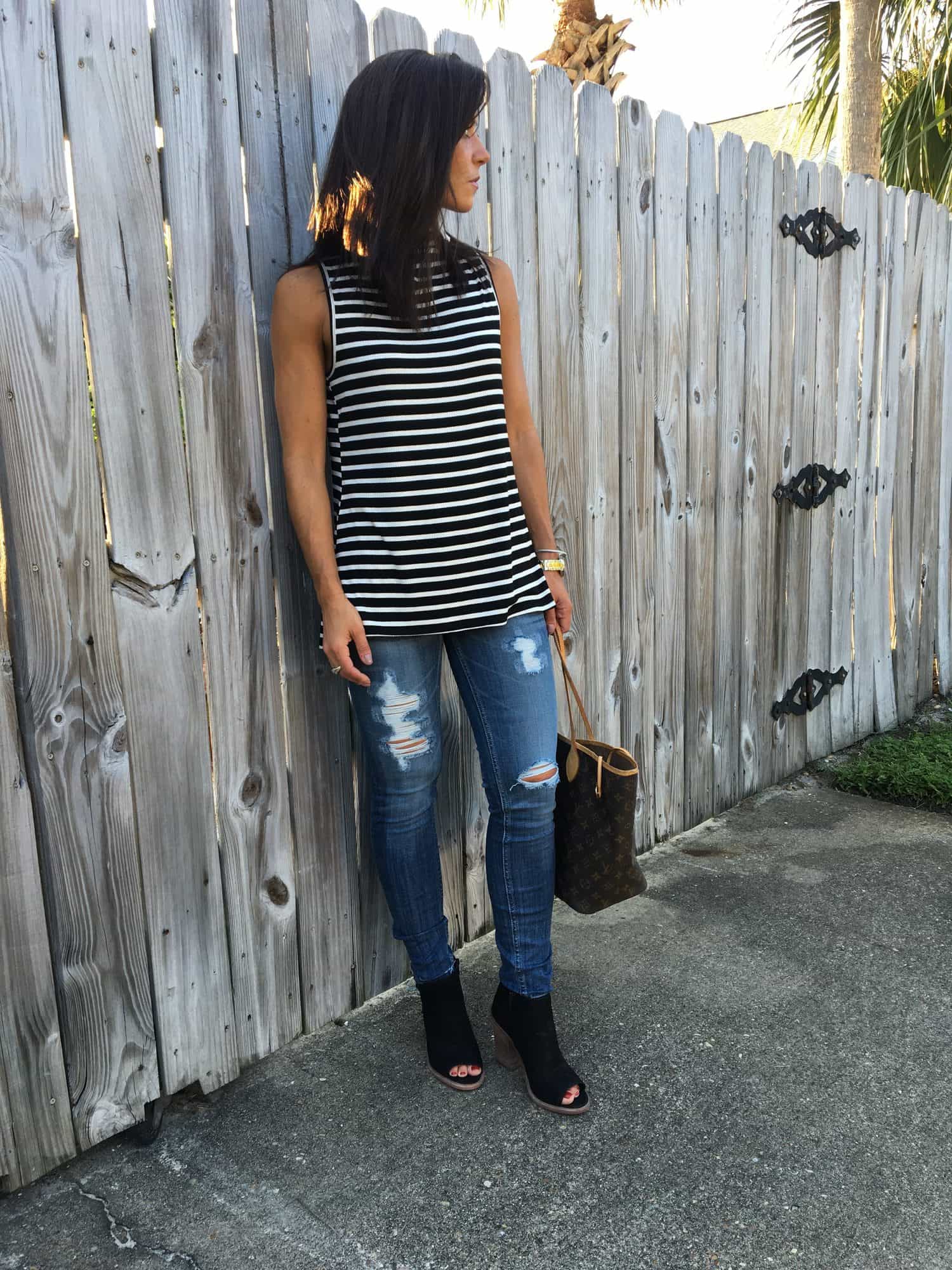 jean / tote / / striped top/ jeans ($68) / booties love these booties too tassel earrings (so light! )