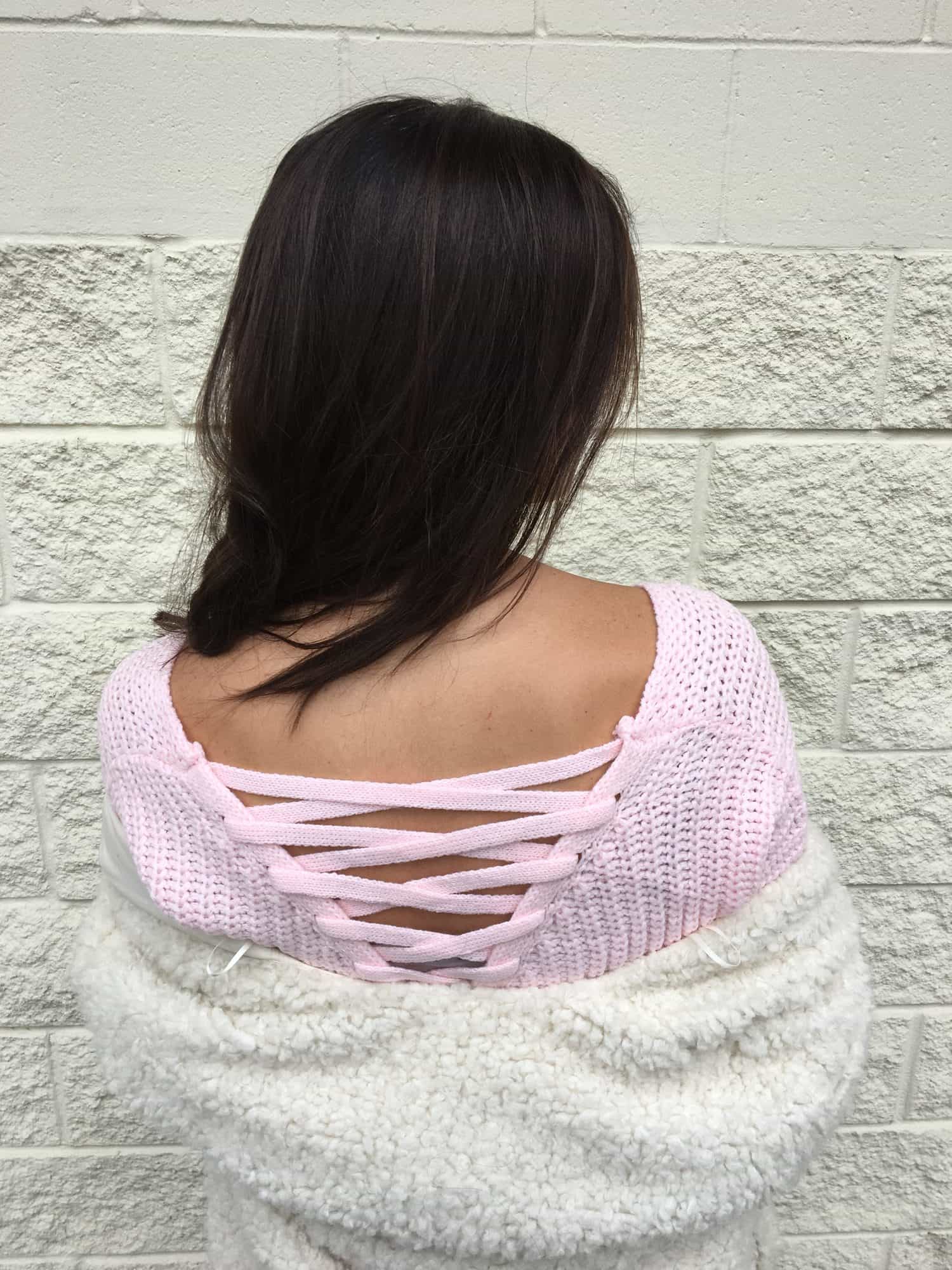 Pink sweater/ similar here / faux fur or this one (under $100)