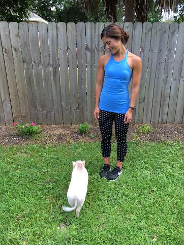 If you saw my insta, I can’t get over how big Kibbles is getting! All she wants to do is eat. AH!! Anyways, this past weekend I was not motivated at all, but once I started running I felt a little better and created this quick workout! Please change it to your fitness level… this is just something to change up the normal run!