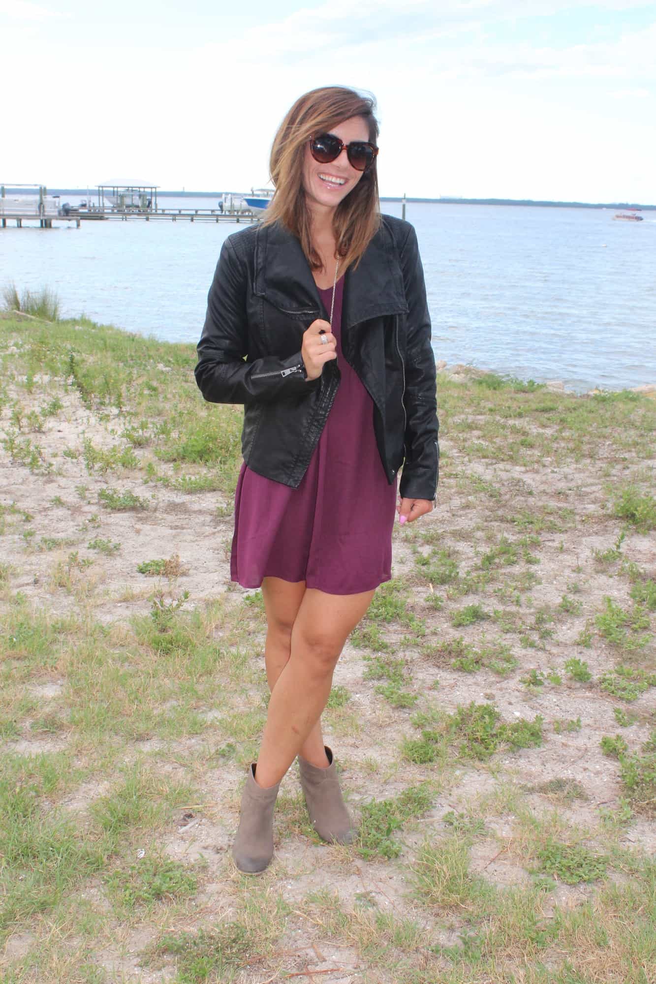 Leather jacket (almost exact) • Dress (similar one for only $20) • Bag • Sandals
