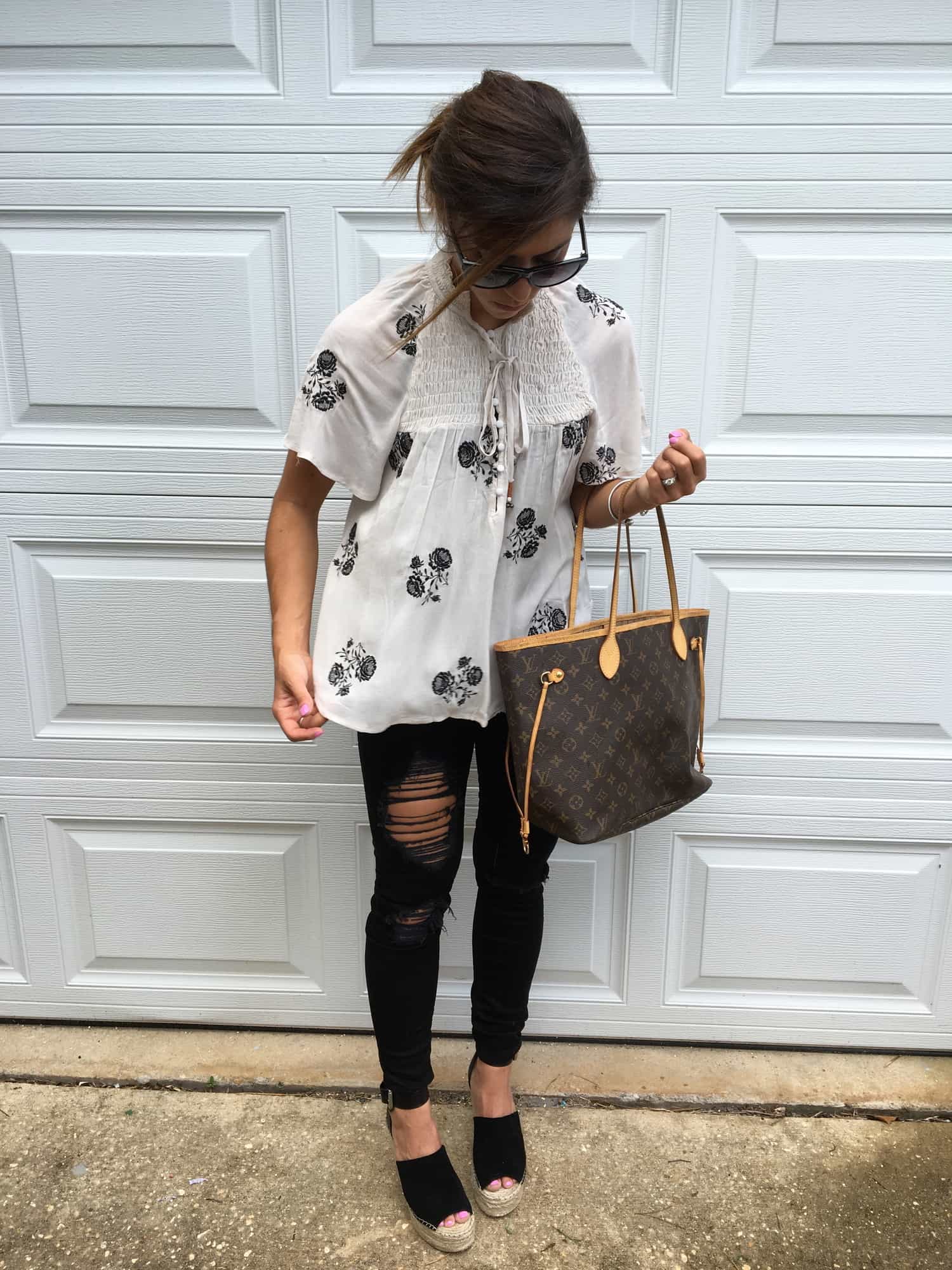 T-Shirt (similar in stock)• Shorts • Sandals • Purse