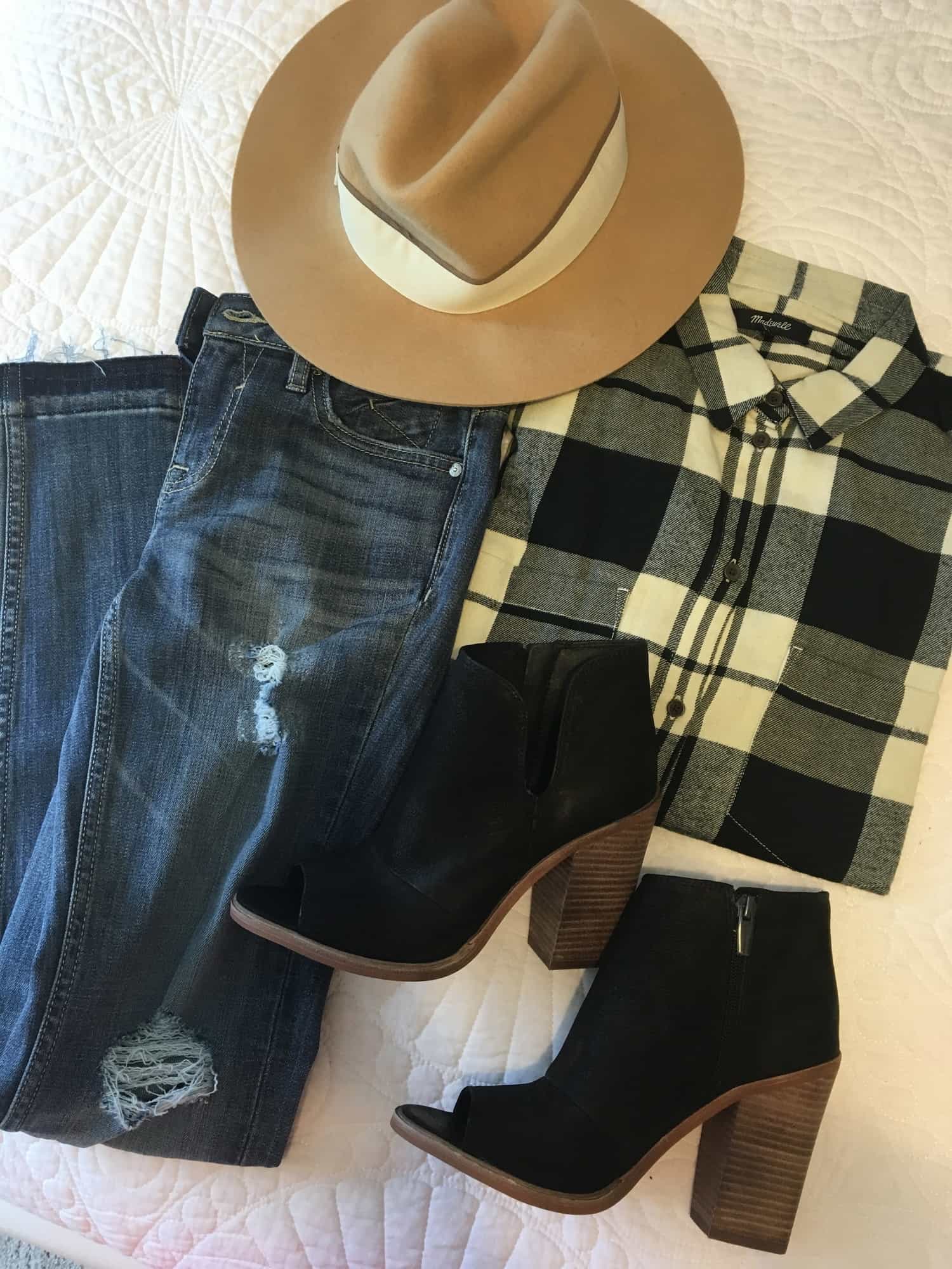 Jacket (Similar in stock)• Jeans • T-Shirt • Tote
