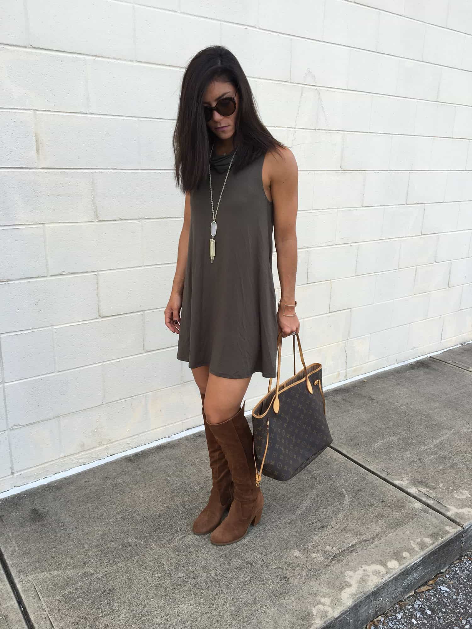 We made it half way through the week! So, I have been dying to wear these boots I got back in July. They have sold out a few times, so I’m glad I got them when I did! Since its still so hot here in Florida, I paired them this dress it comes in a ton of colors. I guess olive is my favorite color this season because I have been wearing so much of it. This dress also caught my eye because it has pockets! Hope your all having a good week. This week seems so long because my husband and I have an exciting weekend coming up! Stay tuned…