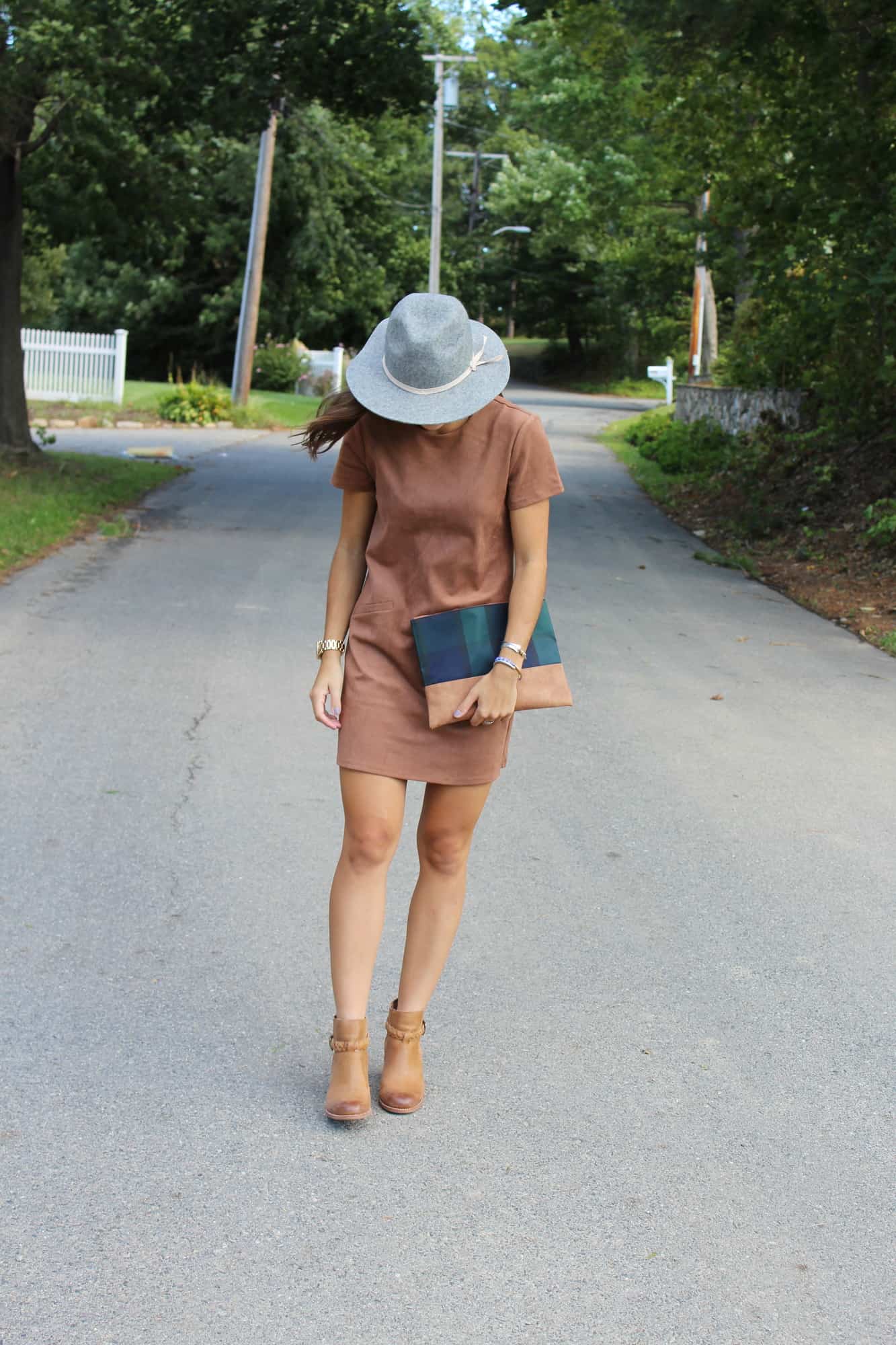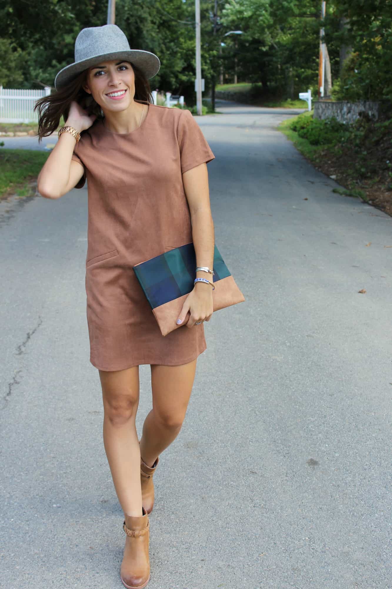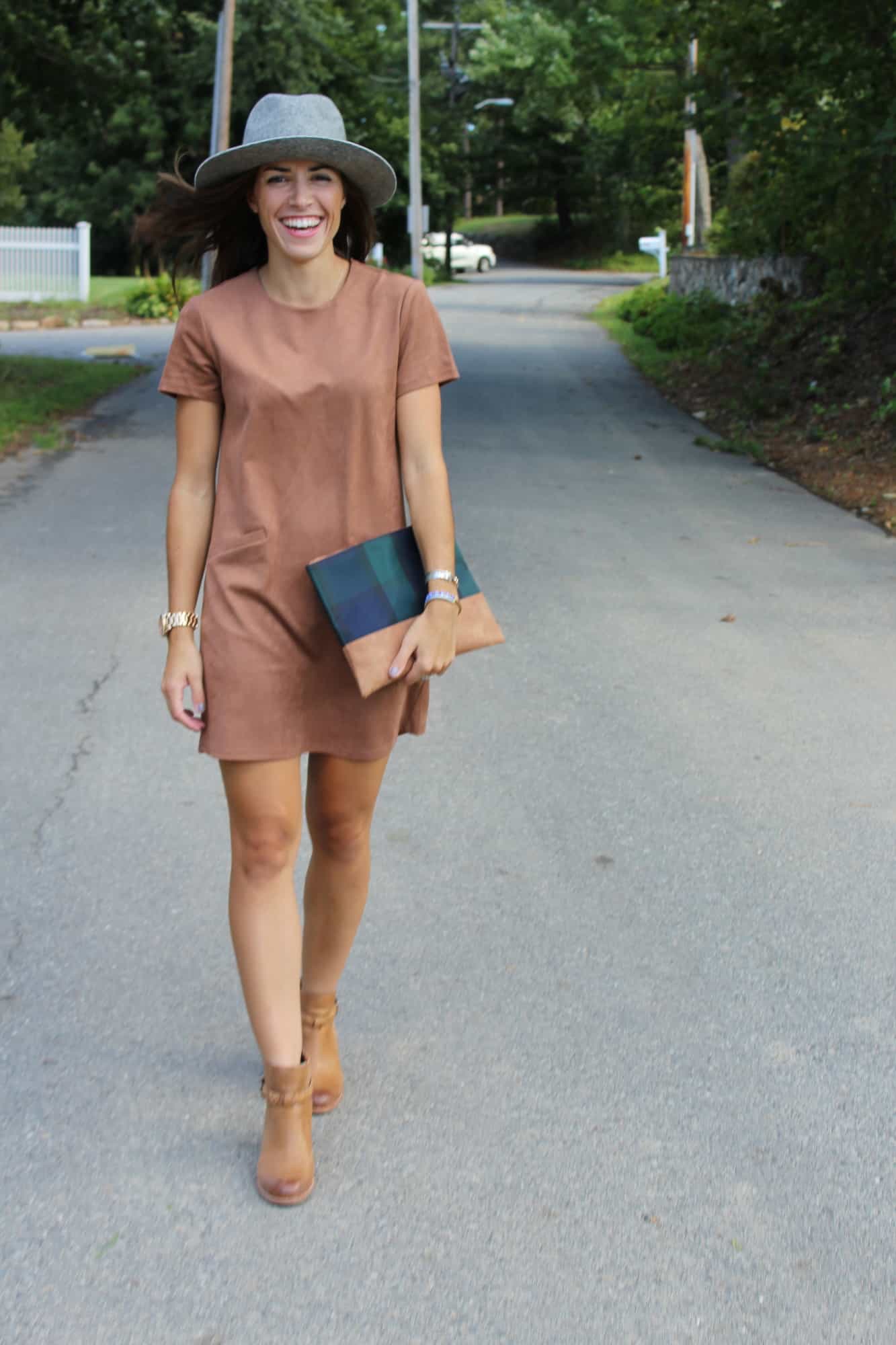 Just picked up this dress and I couldn’t be more excited to wear it this fall! Suede is so in this season. I’m loving this New England weather lately, hanging on to the last few weeks of summer then heading into fall with hats, suede and booties! This dress is so versatile you can wear it with heels or booties like these ones pictured (shop them below). I can just picture this apple picking, weekend trips to the farm for cider donuts or day trips for some fall shopping!