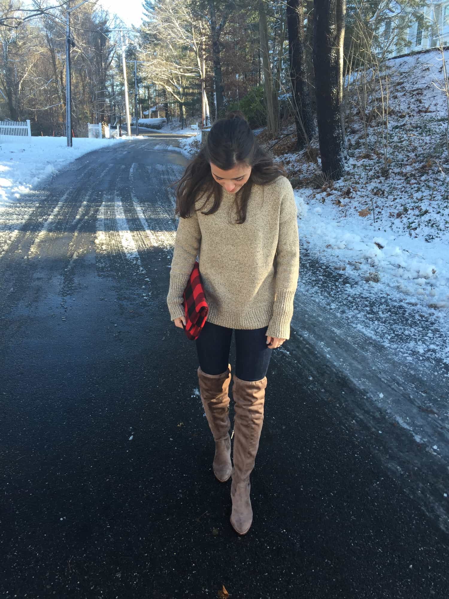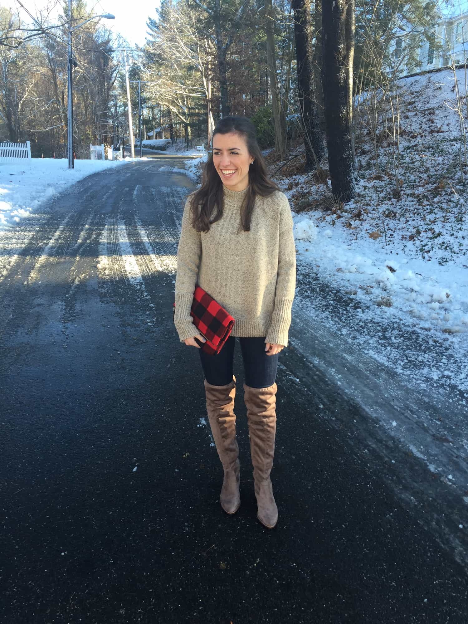 Sweater – Jeans – OTK Boots – Buffalo Check Clutch