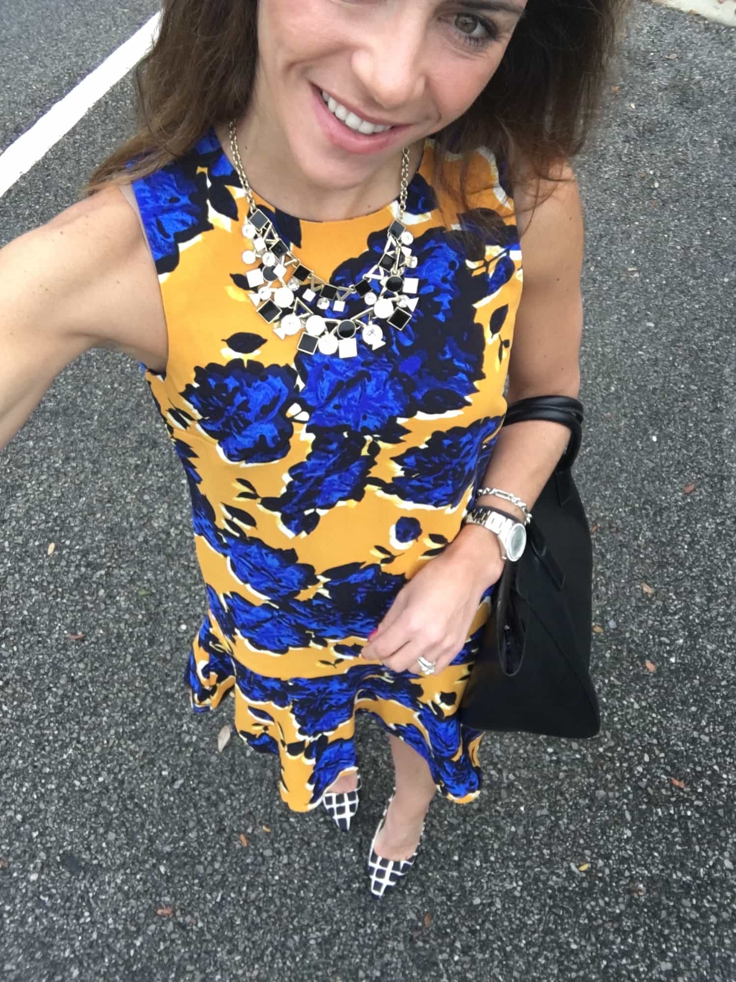 I paired this with plaid (similar) shoes and a chunky statement necklace (similar)