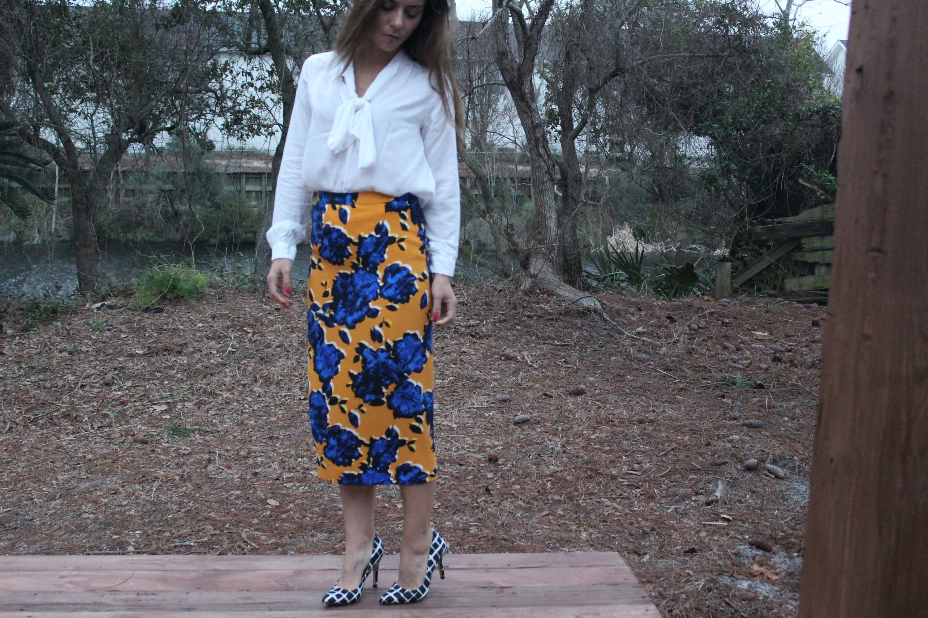 skirt – size up to be able to move lol! This is a pencil skirt for sure. Also love this print. Shirt. For a going out look I would pair it with peplum and these fun earrings.