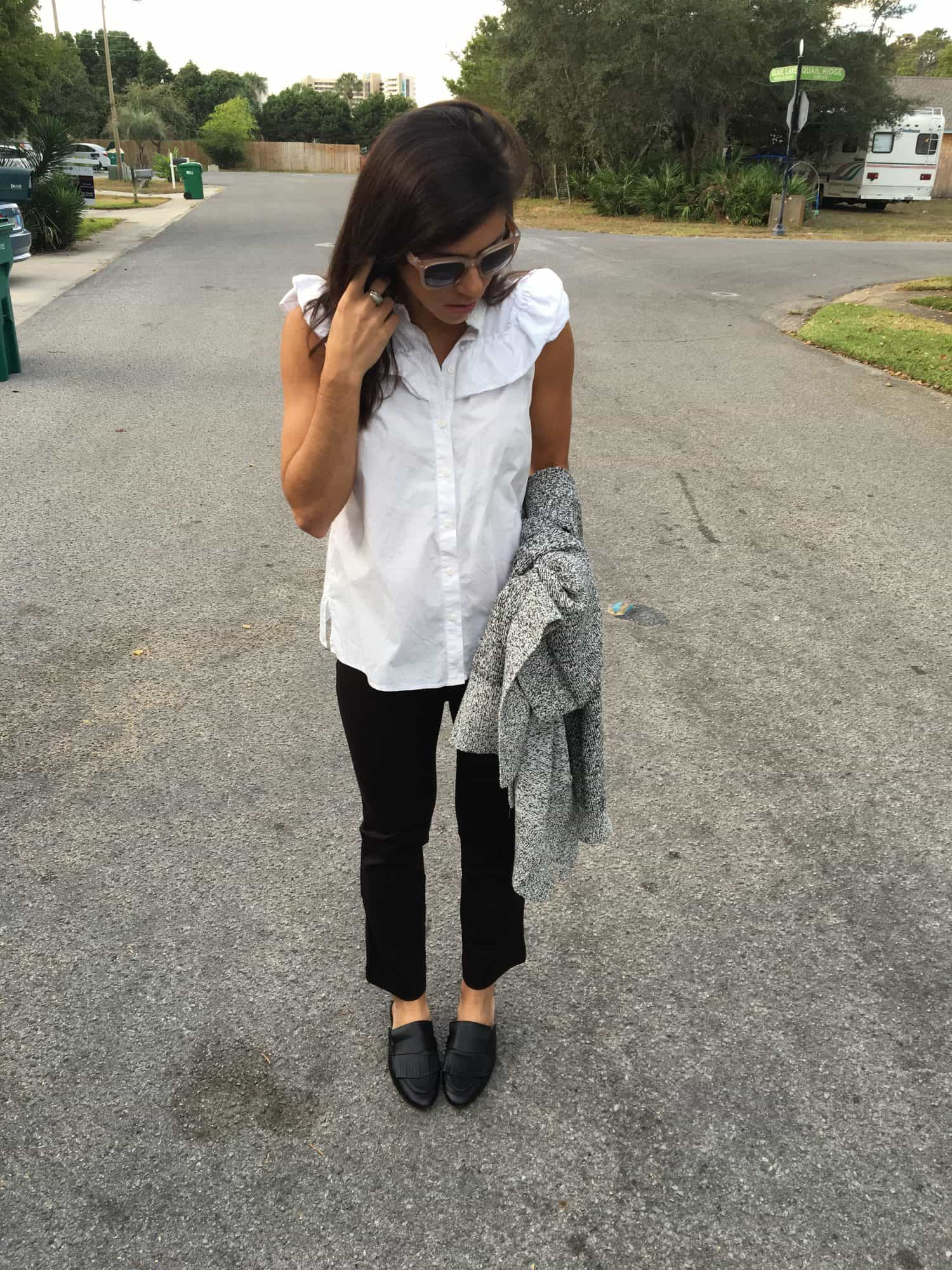 ruffled blouse / kick crops / similar loafers (mine are from HM but sold out)/ cardigan (always at my desk!) Similar here actually like this more and on flash sale today!